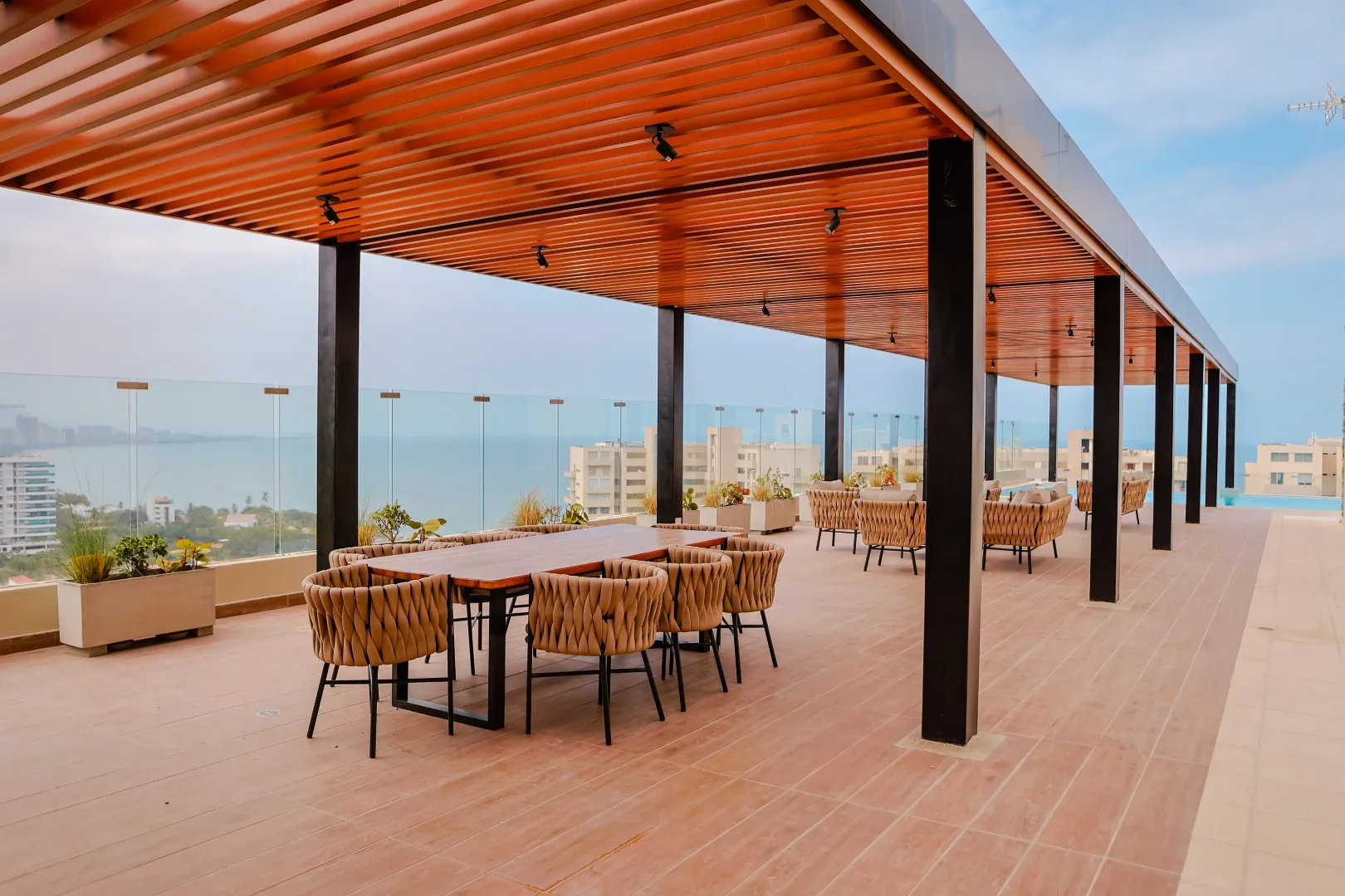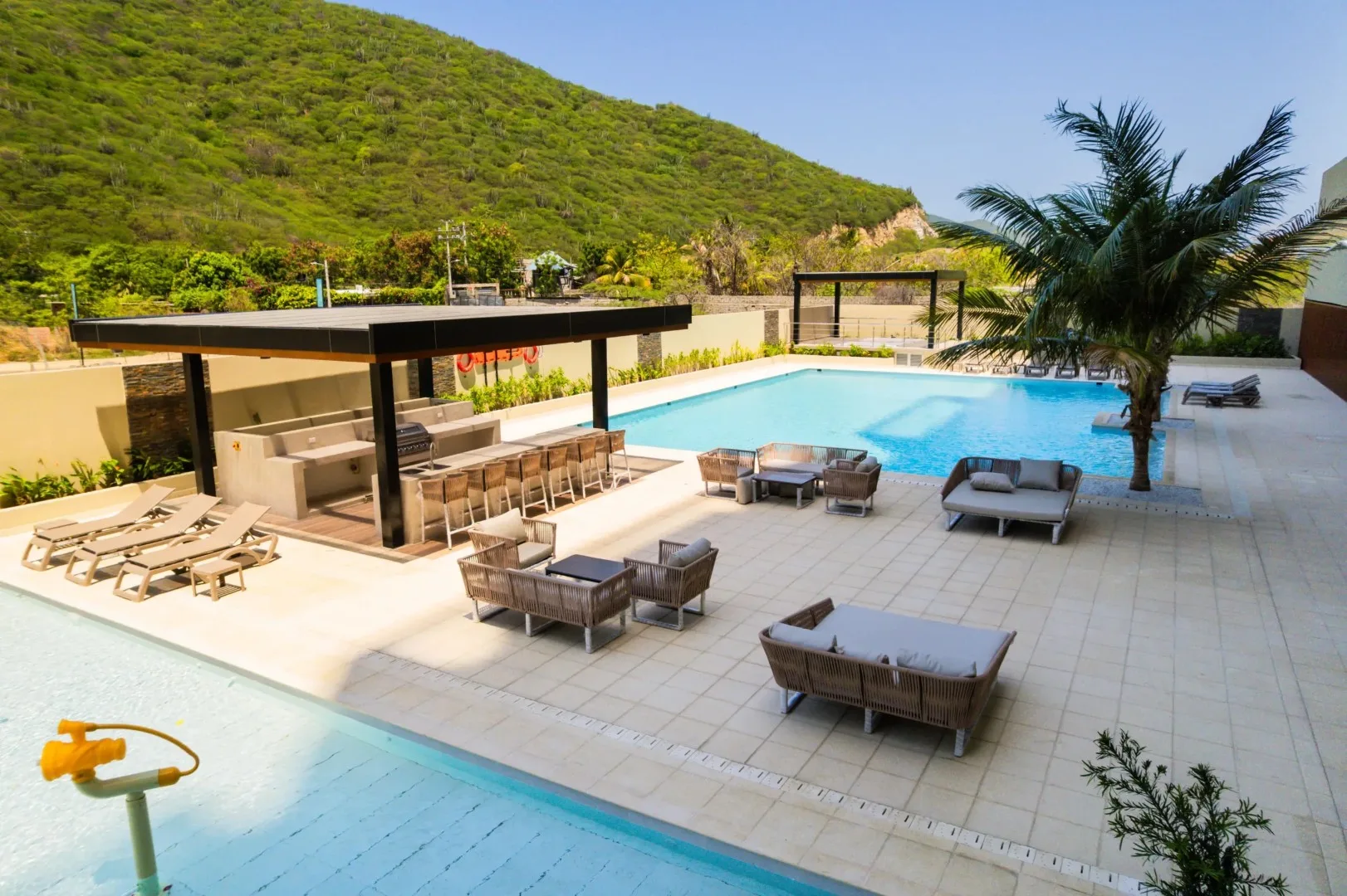 - Zona BBQ dotada con nevera, gaveteros y BBQ